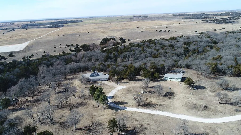 This property consists of approximately 160 acres of beautiful timbered land with approximately 1/3 of the property in native grassland. The property is located on a dead end road offering complete seclusion for the home and the hunter. The property carries a very large spring fed pond with continuous water running through overflow pipe nestled in the backside of the home in the heavy timber area. This property is an excellent hunting tract for deer, turkey, with opened shooting lanes and access road throughout the timber. The property is improved with a very unique home that consists of approximately 2,180 Sq.Ft. of living area that was built in 1980. The home is rock exterior with flattop roof and re-tracking pyramid glass roof that covers the indoor pool area. There are 3 bedrooms (two has full bathrooms and one fireplace). The center of the home has an L shape indoor swimming pool, game room area and living room w/fireplace. The kitchen has Corningware electric cooktop, Jenn-Air grill, Maytag dishwasher, Amana oven and microwave, as well as, lots of cabinets. The home has central heat/air, Kohler generator switch, 2 car attached garage, storm cellar basement and a four car detached garage/shop. If you have been looking for that excellent hunting/recreational spot with a secluded home/lodge, then be sure to view this home.