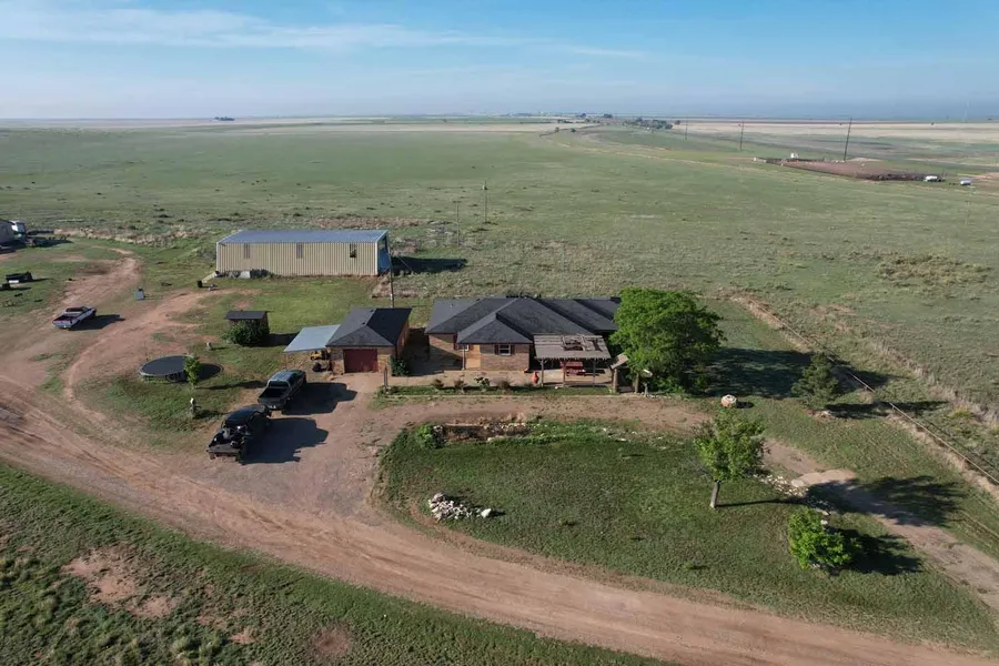 This nice homestead includes a well-built, 1970 square foot farmhouse with a basement, as well as a 40x75 insulated shop. This property also includes a nice set of cattle pens with 300 feet of bunk space with a nice, covered processing area. The grass pasture is in good shape and sloped off into a playa lake that is covered in good productive grassland and the fencing is fair.