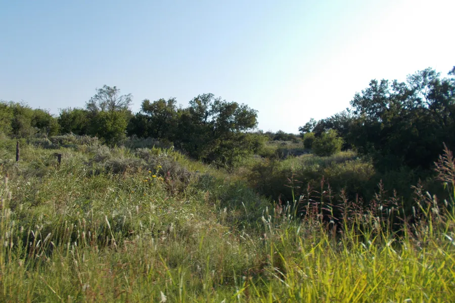 The balance of the property is in native pasture, with mesquites, hackberry trees, and chinaberry motts. Short range brush and vegetation includes sage, ragweed, bluestem, and a variety of native grasses. Most of this pasture land drops down into one of two small canyons that run across the middle of the acreage. These draws create corridors for wildlife and provide excellent staging areas for feeders. While there are no ponds on the property, you could put one in along the main draw, or you could use the water well to fill up a large tank.