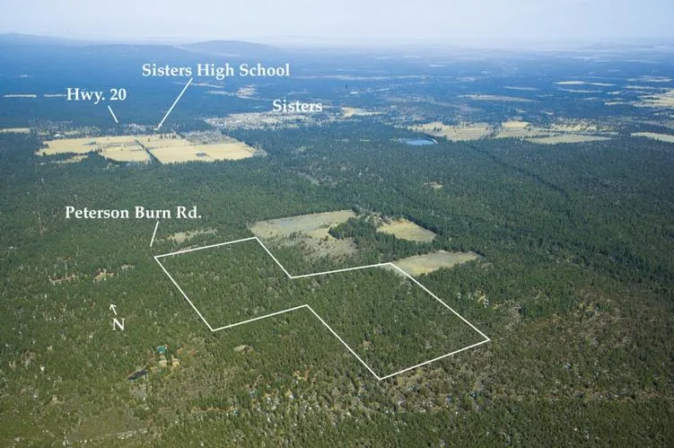 Township 15 S, Range 10 E, Section 20, Tax Lot 400. From Sisters, Oregon, drive west along Highway 242 (McKenzie Highway) to Edgington Road. Take left and proceed south 2 miles to Peterson Burn Road. Turn left and go .6 mile to northwest corner of property.