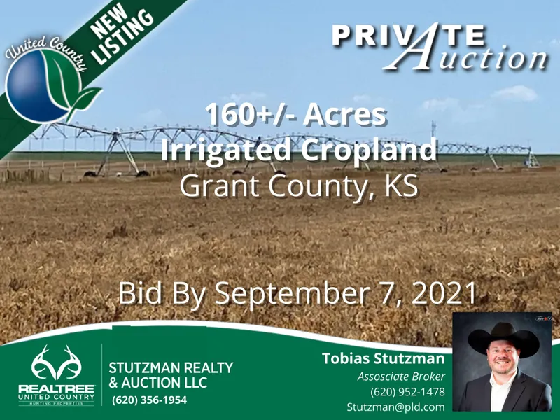 This Grant County Kansas farm property is being offered for sale by Private Auction Bid by Phone Bid by September 7, 2021.