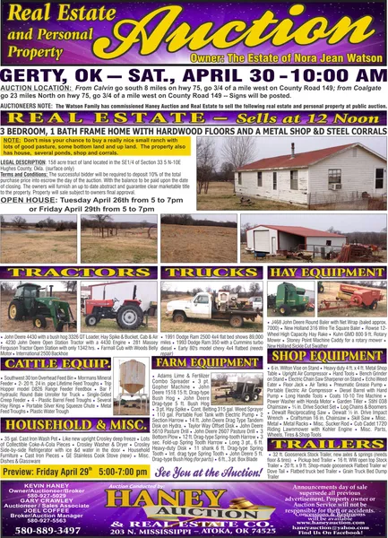 This is a really nice 160 ac that has been cross fenced to facilitate rotational grazing with water in every pasture and hay production. The pastures are primarily Bermuda grass and rye grass which complement each other by extending the grazing season. The personal property auction will start at 10:00 am. The real estate will sale at 12 noon.