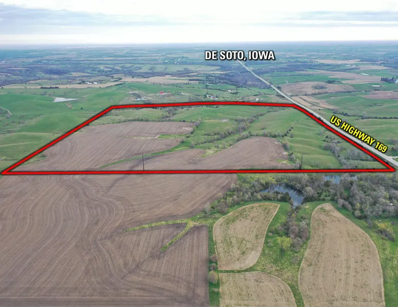 Research Parcel InformationFrom De Soto, Iowa: Travel south on US Highway 169 for approximately 2.5 miles and the property will be located on the west side of the road. Look for the Peoples Company signs.