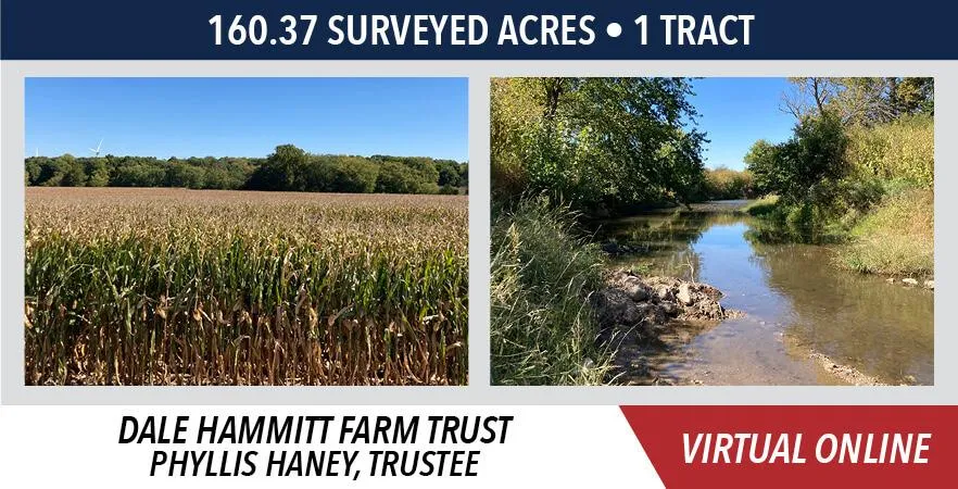 The property contains a total of 160.37 surveyed acres and will be sold in 1 tract. The farm represents a combination of productive tillable farmland and timber providing excellent whitetail deer hunting and other outdoor recreational opportunities.