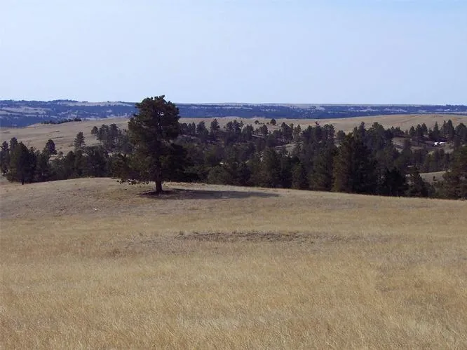 SIOUX COUNTY PINE RIDGE RANCH Harrison, Sioux County, Nebraska: Consisting of approximately 160 deeded acres, this ranch is located 14 miles east of Harrison, Nebraska, and is easily accessed off US Highway 20 which provides one-half mile of highway frontage. The Pine Ridge Ranch consists of heavily-sodded grass pastures and pine-covered hillsides. Its many draws provide ample protection for livestock and wildlife. Reliable stock water is provided by a windmill with a pump jack. There are no improvements on the ranch; however, electricity is available as are several home sites.