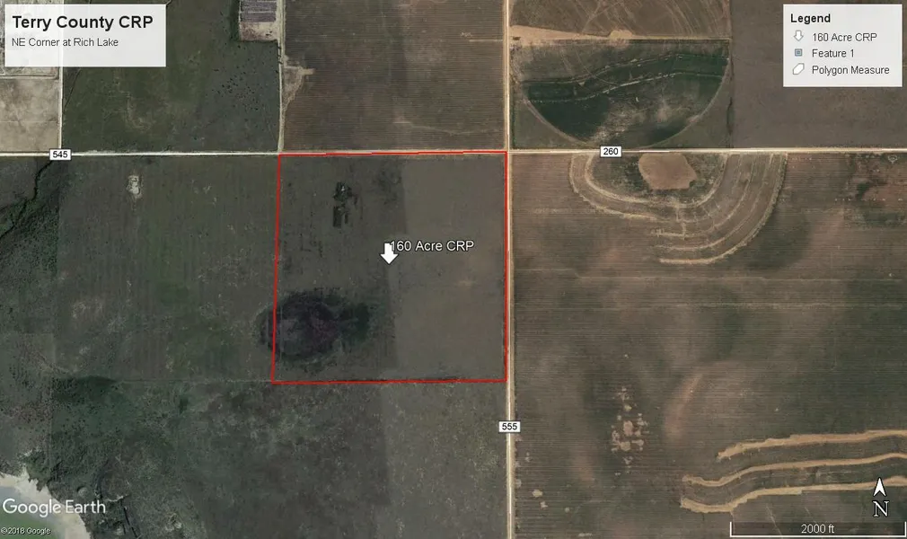 CRP grassland northeast of Rich Lake in Terry County, Texas. CRP program contract runs through 2020 paying $6548 annually. Birds, hogs and deer area. Hunting recreational land 30 minutes from Lubbock, Texas.