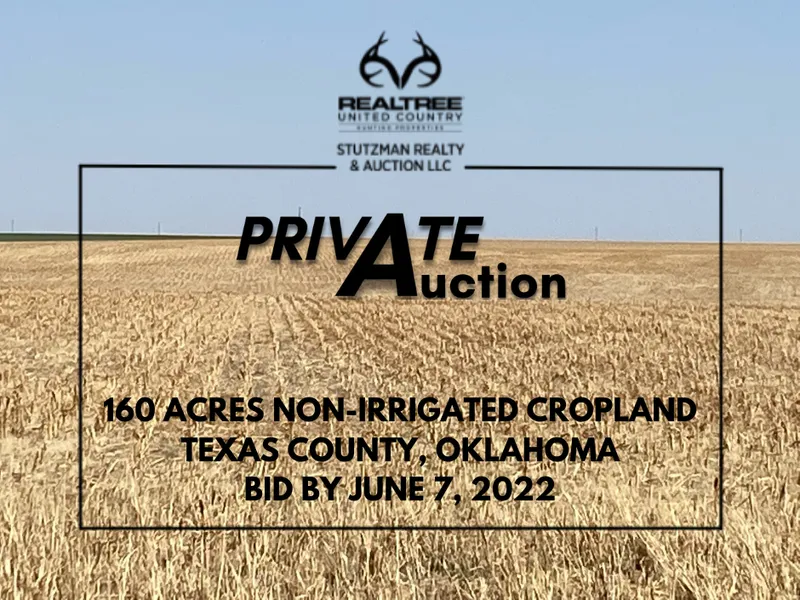 Contact United Country Stutzman Realty & Auction to inquire and bid on this farmland investment opportunity located in the Panhandle of Northwest Oklahoma. Available are 160 acres of non-irrigated farm ground. Offered for sale and made available by Private Auction. Bid by Phone Bid by June 7, 2022. Contact Tobias (Toby) Stutzman at office (620) 356-1954 or (888) 818-1954 or mobile (620) 952-1478 with inquires on the bidding process, learn the current bid or for any general inquiries.