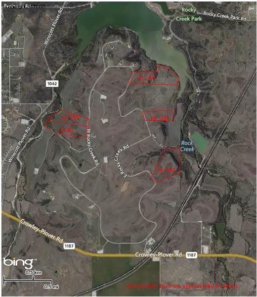 Research Parcel InformationFrom the Chisholm Trail Parkway, turn west on 1187. Travel just over 2 miles to the main entrance to Rocky Creek Ranch on the right. From 377, turn east on 1187 and travel to Rocky Creek Ranch main entrance