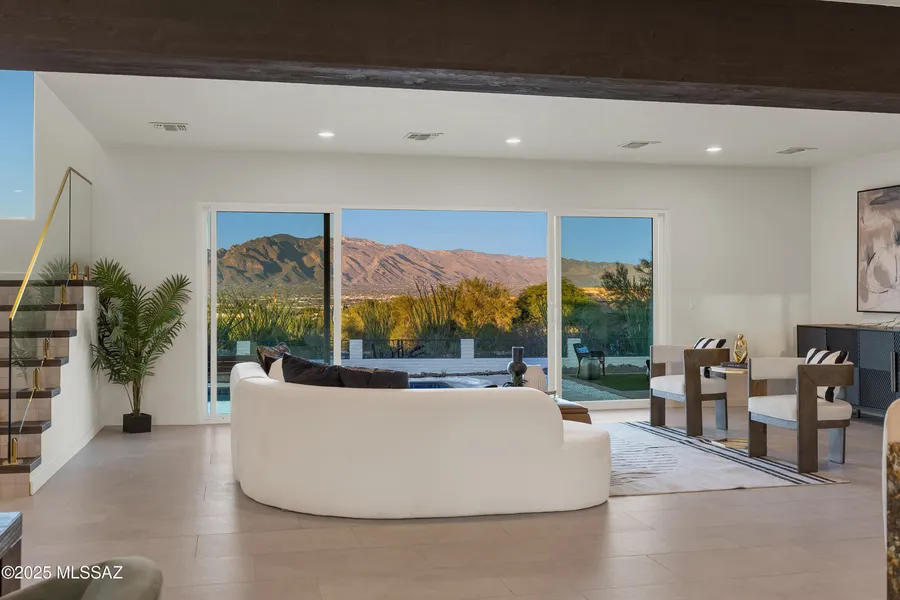 Discover modern desert luxury in this newly remodeled architectural masterpiece on Tucson's West Side. Perched on nearly an acre, this home offers privacy, panoramic city lights, and breathtaking Catalina Mountain views from every room. The open-concept layout features expansive glass sliders, a designer kitchen with waterfall granite island, and high-end appliances. Enjoy a resort-style backyard with pool, patios, and sunset views. Upstairs, a loft opens to a view balconya"ideal for relaxing or entertaining. Every bath is reimagined with spa-like finishes. Minutes from Downtown Tucson, Starr Pass, and top dining, this home blends luxury, livability, and stunning desert beauty. Agent/Owner This stunning modern home has been fully reimagined from top to bottom, offering a rare combination of privacy, design, and panoramic views. Every detail was thoughtfully selected to complement the home's clean architectural lines and connection to its natural desert surroundings. The open floor plan is ideal for both everyday living and entertaining, showcasing sweeping views of the Catalina Mountains, city lights, and colorful desert sunsets. The chef's kitchen features premium appliances, a waterfall granite island, custom cabinetry, and brass accents that add warmth and sophistication. The upstairs loft provides a versatile second living area perfect for relaxing or entertaining and opens to a balcony with glass railings, offering unobstructed panoramic views of the mountains and skyline. The primary suite includes its own private outdoor patio, creating a peaceful space to enjoy coffee at sunrise or unwind under the stars. Inside, stylish glass stair railings and designer lighting elevate the modern aesthetic while maintaining a bright, open feel. Every bathroom has been reimagined with spa-inspired finishes, including a soaking tub, walk-in shower, and dual vanities. Outdoors, enjoy multiple patios surrounding a sparkling pool and lounge areas designed for both gatherings and quiet evenings. Set on nearly an acre, the property offers ample space and privacy while remaining just minutes from Downtown Tucson, I-10, Starr Pass, and scenic hiking in the Tucson Mountains. Some of the home's recent upgrades include refinished pool and equipment, HVAC, water heater, roof, appliances, windows, doors, kitchen, bathrooms, flooring and more creating a move-in-ready modern desert sanctuary that beautifully blends luxury, comfort, and breathtaking natural beauty.
