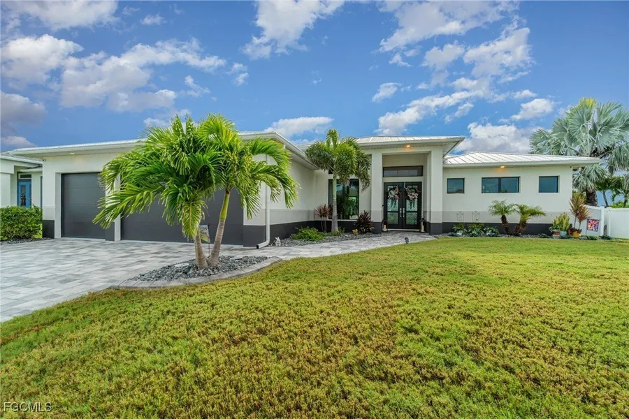 The lifestyle you've dreamed of is truly affordable in this immaculate 4 bedroom, 4 bath gulf access home pool home. With 3 ensuite bedrooms, including two with sliders to the lanai, this home is perfect for a family or entertaining guests. It could also be purchased with the optional furnishings so it could quickly be turned into a fantastic vacation rental property. The most important aspect when buying a new home is the safety and security features, and this home has it all including impact glass throughout, an upgraded 2023 50-year metal roof, roll down shutters to protect the lanai furnishings, whole home RO system and it is elevated higher than older homes and has a low-cost assumable flood insurance policy. The interior has all the features a discerning buyer is looking for. The double impact glass entry door with transom window above and three 8' tall sliders across the back floods the home with natural light. The main living area with tall tray ceiling and crown molding, open to the kitchen with large four seat waterfall granite island on modern white cabinetry and spacious dining area combine to create a large open bright and airy feel in the main living area. The kitchen also includes a tiled backsplash, under cabinet lighting, a pantry closet and an upgraded 2 drawer French door refrigerator. You'll find tile flooring and 8' doors throughout the home including all the bedrooms. The spacious master suite will not disappoint with a large dual sink vanity, beautiful soaking tub and spacious walk-in shower. All bathrooms have modern white cabinetry, granite and custom walk in shower stalls. Two bathrooms have dual sink vanities. Even the huge laundry room has modern cabinetry and a large granite countertop with sink, plus a storage closet and a door leading to the large 3-car epoxy coated garage floor. It's the back yard that makes this home special. Step outside to a large, covered lanai and a massive open lanai. There is plenty of room for a dining area and a fire pit surrounding the beautiful pool with large sunshelf, and there is a pool bath and a fully fenced yard, great for the family pets, all sitting on a wide gulf access canal. Recent upgrades include a 2024 hot water heater, 2023 pool pump, 2023 exterior paint and a 2022 AC condenser. You will not find a better value gulf access home on the market.