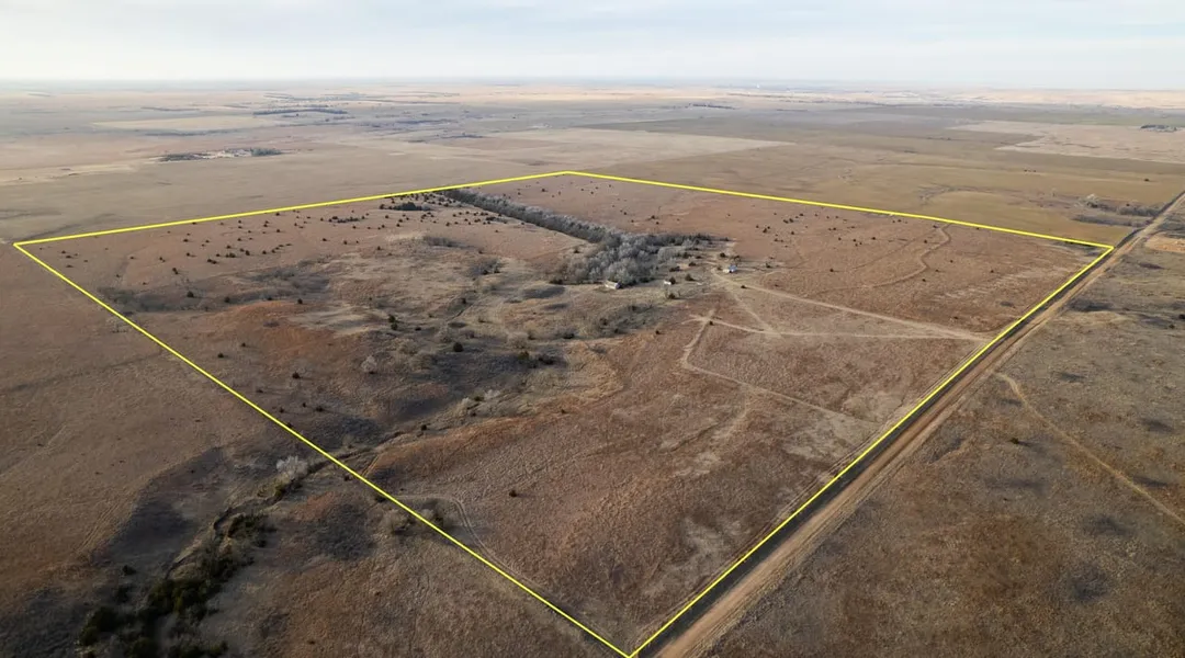 Property Description: Situated near the town of Coldwater in eastern Comanche County, this farm has tremendous whitetail deer genetics that south-central Kansas and Unit 16 are known for. The current landowners have taken multiple trophy deer over the years including one that scored over 200 inches. A strict management strategy to selectively harvest mature deer is evident by the number of older bucks captured on the trail cameras. Prior to their ownership, no hunting was allowed on the property for many decades, until an archery-only hunting lease agreement began. This decade-long lease eventually turned into ownership and the owners have continued the tradition of hunting deer on this farm using archery means only. A thick shelterbelt consisting of both deciduous and cedar trees runs from the center of the property to the western boundary. The area topography shows a large ridgeline this farm sits on that divides two watersheds. Water flows off the ag fields to the north and west, traverses down through the shelterbelt and farmstead in the center and then exits through the steep draw on the southern boundary. The property is fully fenced with barbed wire and has three access gates along the eastern county road. A two-track trail follows the interior of the fence around the entire perimeter allowing easy access for hunting all areas of the property. A solar well located at the old farmstead provides a year-round water source for wildlife and is a major stopping point for deer crossing the property. This pasture acts as a transition zone on their way to and from the large rangeland tracts and neighboring crop fields. Deer will stream out of the deep canyons and collect on this farm since these crop fields are the closest food source for miles around as can be seen when surveying the vast area of solid rangeland nearby. These adjacent crop fields are the primary food source for all types of wildlife in the area including deer, doves, pheasants, quail, ducks and geese. Large groups of ducks and geese were seen feeding on these fields while photographing the property. Several big coveys of bobwhite quail and pheasants were also seen. Mourning doves collect in big groups year-round to roost here and provide additional wing shooting opportunities. Milo and wheat are commonly the annual crops that are rotated on these fields, along with occasional dryland soybeans. The milo attracts deer from miles around in the late summer and provides phenomenal early season whitetail hunting. Drone photos show the incredible number of deer trails crossing the fence lines along the south and east. The grass stand consists of primarily of little bluestem with scattered plum thickets for additional deer bedding spots. The shed on the property provides a perfect place to store some equipment out of the elements and there is also an old barn and smaller hay shed. The property has great access and sits only a mile and a half away from Highway 160 running between Coldwater and Medicine Lodge, Kansas.