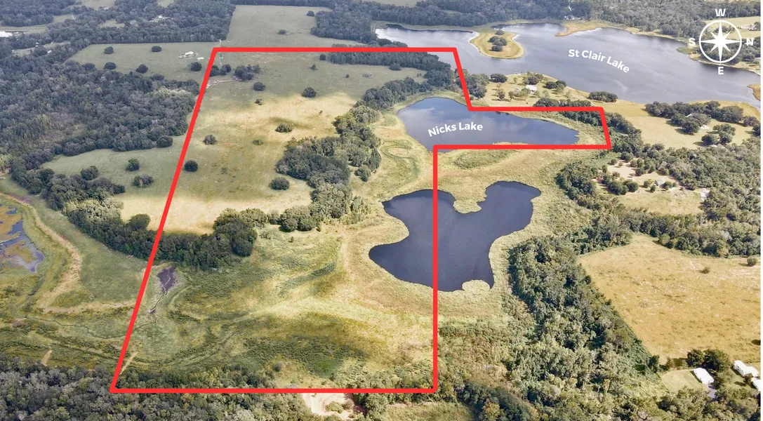 Nicks Lake Ranch is a 161-acre lakefront property located at the end of Church Road in Brooksville. This sprawling ranch features rolling hills, improved pastures, and frontage on both Nicks Lake and St Clair Lake. Improvements include cattle pens, one 4" well, and perimeter and cross fencing. It offers a rural setting while still being within an easy commute to the downtown life, allowing easy enjoyment of both lifestyles. Its diverse habitat, including shrubbery, wildflowers, oak hammocks, planted pine, and woods, bring the property to life.