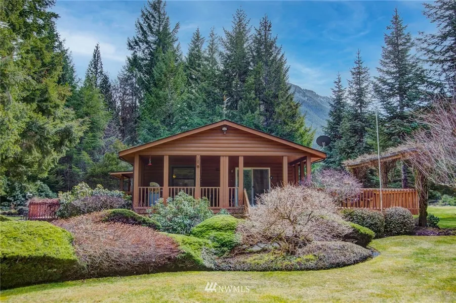 This stunningly beautiful waterfront home sits on over 8 acres on the banks of the sparkling Johnson Creek. Gorgeous mountain views tower over this semi-secluded home in a park-like setting. The circular driveway with gate entry leads to the wonderful double garage with shop, carport and a covered and secured RV parking with hook-ups. The landscaping has been professionally maintained and has an underground sprinkler system and full elk fence. It has a covered front parch, a sunny deck for your morning coffee and a second deck with hot tub that overlooks the water. In addition it offers many outbuildings, garden, greenhouse and equipment shed.