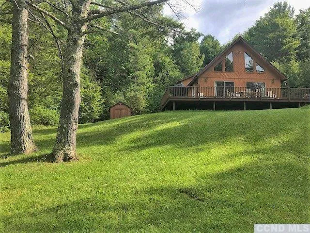 Dreaming of an affordable weekend getaway in the Catskills? Then you must check out this rustic mountain chalet on 5 private acres in the sleepy little town of Gilboa NY. Sweet four season retreat with mountain views is peaceful and quiet and central to all that's happening in the Catskill-Mid Hudson Valley. Open concept floor plan boasts brand new wood floors recently installed through out the living, kitchen and bedroom areas which compliment the knotty pine walls and beamed ceilings. 2 guest bedrooms and full bath on main floor plus a large loft with half bath currently used as a third bedroom, one could easily enclose and make into nice Master suite. Other features include woodstove and 2 sets of glass sliders that open to large wrap around deck. Close to Hunter, Windham and Plattekill Resorts, Gilboa Reservoir for fishing and hiking, Mine Kill State park for swimming and paddling. Home comes fully furnished, maintenance free metal roof, low taxes. Good Airbnb potential