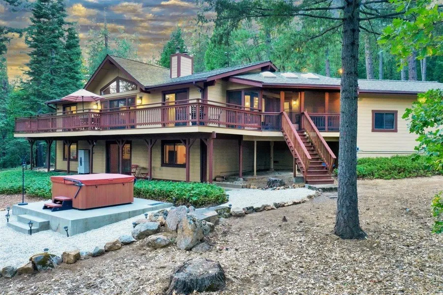Exquisitely updated Nevada City home; only 8 minutes from downtown Nevada City and 15 minutes from the Yuba River! Spacious, chef's kitchen, large dining and living room and a lovely, screened porch off the large rear deck. Gas fireplace in the upstairs living room as well as a wood stove in the lower-level great room. Primary bedroom suite and guest bedroom on main level, 2 more bedrooms on lower level. Paved road to the property with a circular driveway. Roomy 2-car garage with lots of room for storage. Large laundry off garage. Hardwood floors in the living room, travertine in the kitchen, dining room and baths. Large hot tub included. New roof in 2019, new HVAC in 2010. Property has had trees nicely thinned and landscaping is very low maintenance. This home has been very well loved and maintained and is an easy place to call home!