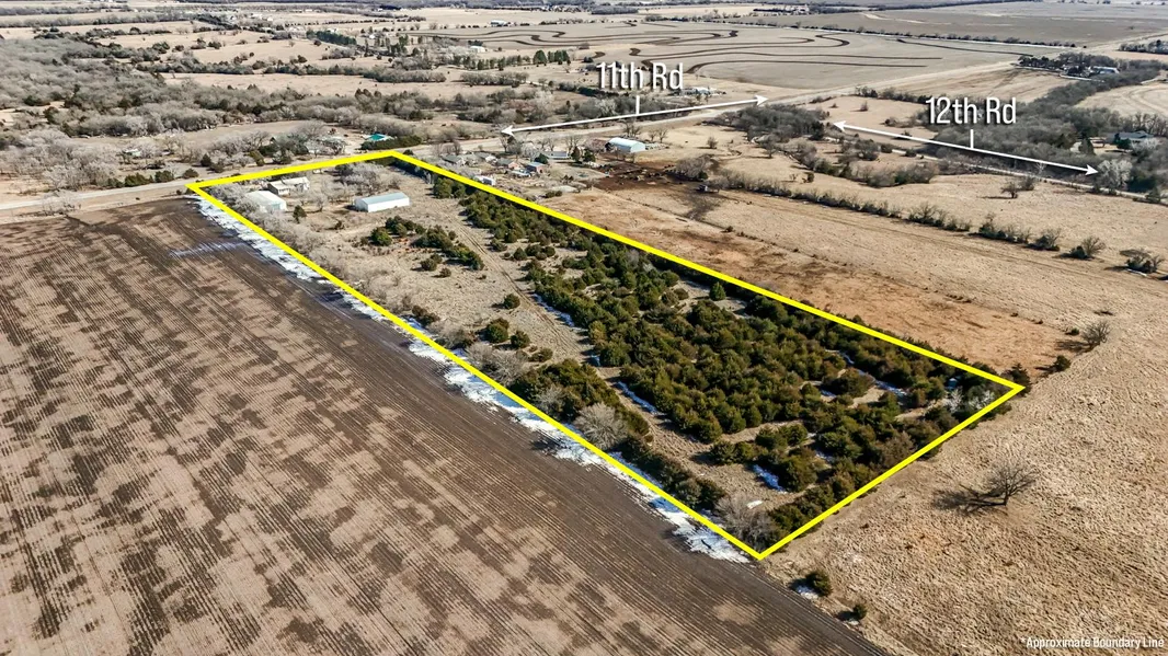 ONLINE ONLY!!! This 2-bedroom, 2-bathroom home sits on 10.5+/- acres, approximately 6 miles east of Mulvane. The treelined property includes a fenced and gated entrance and two large outbuildings!