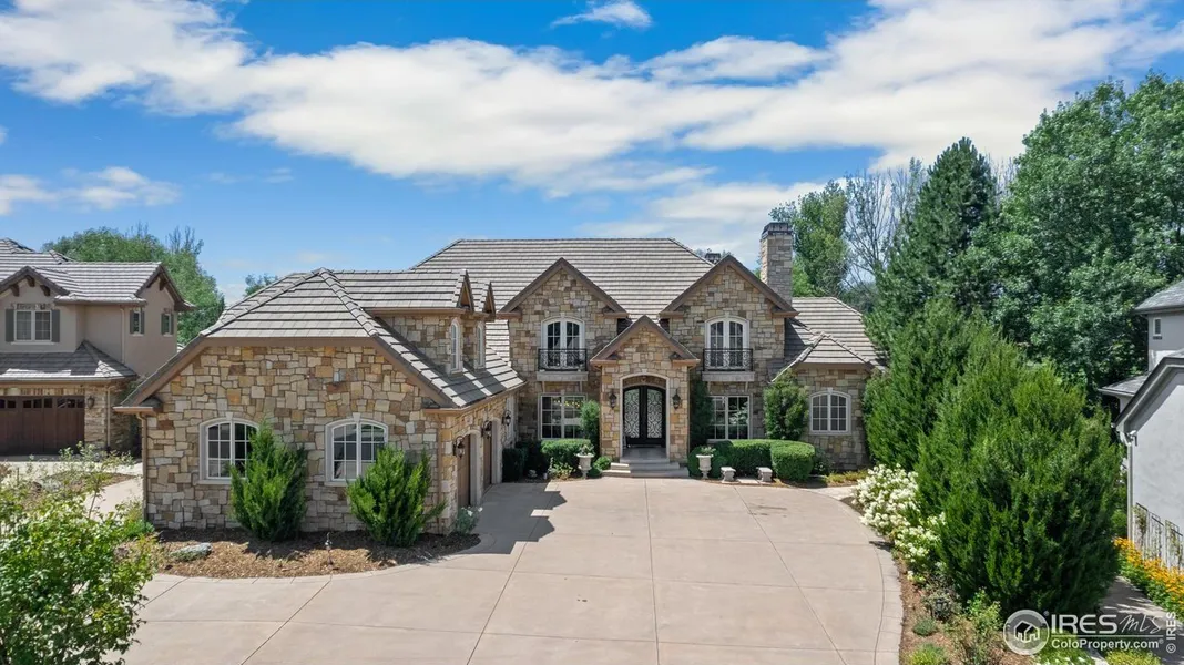 Experience luxury and serenity in this exquisite custom-built home, nestled on a half-acre lot adjacent to Fox Hill Golf Course in Starwood Subdivision, Longmont, Colorado. The distinctive U-shape design embraces an outdoor courtyard with a fountain, linking seamlessly to a lavish veranda. Perfect for celebrating or unwinding, the outdoor spaces boast a covered living room, fire pit, in-built gas grill, and enchanting water feature. The tastefully designed interior provides a lavish primary suite, two additional ensuite bedrooms, a guest area, a cinematic room, a fitness room, sizeable recreation room with bars, and roomy unused spaces ready for your customization. The primary suite is an oasis with a double-sided travertine fireplace, elegant wood flooring, a generous custom dressing room, and deluxe bathroom with steam shower and a Kohler Air Jetted soaking tub. Discover the joy of cooking in the gourmet kitchen, outfitted with top-of-the-line appliances from Wolf and Sub-Zero, and 2 Asko dishwashers. Other notable features include hydronic radiant floor heating, custom cabinetry, low-E external doors and windows, sound-insulated basement with high ceilings, and a six-car heated garage with radiant snow melt driveway. The home is also equipped with CAT-5 wiring, 4 HVAC units, and a comprehensive security system, ensuring comfort, convenience and peace of mind. Explore the charm of this one-of-a-kind property by watching the video tour.