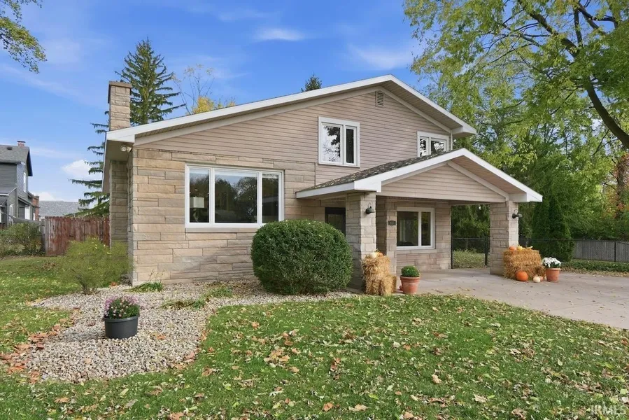 With outstanding proximity to Ball State University, IU Health Ball Memorial Hospital, the White River Greenway, and downtown Muncie, this White River Blvd home offers convenience and charm. Designed across three levels and offering 2,425 SF of living space, this property includes 3 bedrooms, 3 full baths, and a large 2-car detached garage, plus a surprisingly spacious fenced yard. The home features two inviting living spaces—one on the main level, and a more formal living room and kitchen upstairs. The kitchen is a standout with abundant storage, stone countertops, and updated appliances, including an induction and convection oven. The lower level adds even more flexibility with an office area, a built-in desk, and a large tiled, no-step walk-in shower. The current owner has thoughtfully updated lighting throughout. Additional updates include a new AC unit (2023), an 80-gallon water heater, an upgraded outdoor spigot, and a fireplace damper. The W/D is now staying with the home. A virtual tour is available.