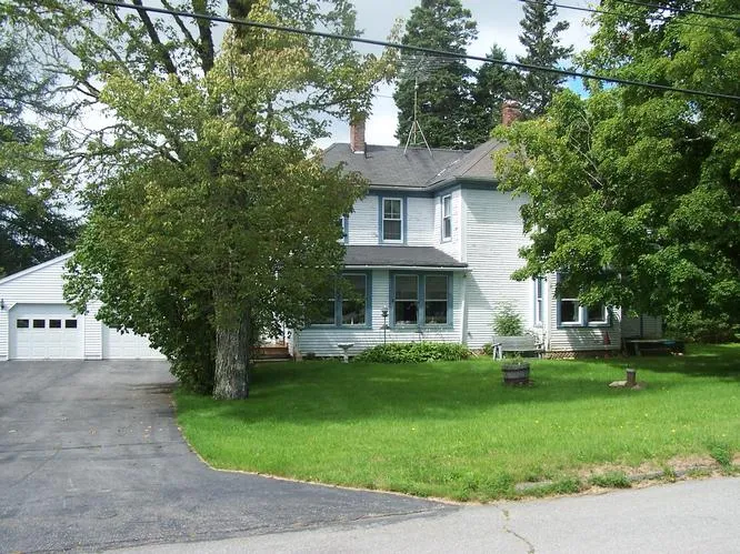 #1018) Calais, 1617 River RD: Large Sunny Rooms! Full size 4BDR/1 Bath home on the Calais/Robbinston town line with many updates and a 2 car garage, paved driveway, one acre of land, private backyard with a deck and enclosed front porch, all on a full foundation.