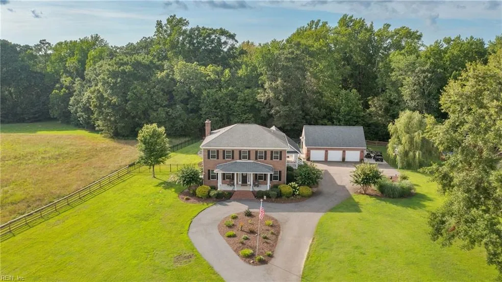 Country Oasis on Lake Burnt Mills. Welcome to your private sanctuary. This 4,100 sf all-brick estate is nestled on nearly 7 acres. This stately 4-bedroom, 2.5-bath home is filled with southern charm, featuring 3 inviting porches perfect for relaxing or entertaining. The main level offers a semi-open floor plan, w/ a spacious eat-in kitchen with room for multiple chefs, 2 large pantries, formal dining, family room w/ wood-burning fireplace, office, and an oversized laundry/mudroom. Upstairs, you ll find all 4 generously sized bedrooms. The primary suite boasts a clawfoot tub, walk-in shower, and a walk-in closet, offering a luxurious retreat. Outside, enjoy 3 car detached garage, potential workshop, 2 large finished rooms above. Head down to the lake and private dock w/ new Trex deck, ideal for small boats, kayaking or fishing. After a day on the water, relax in the pool, hot tub, and or gather around one of 3 fire pits. A rare blend of privacy and convenience,this property is a must-see!