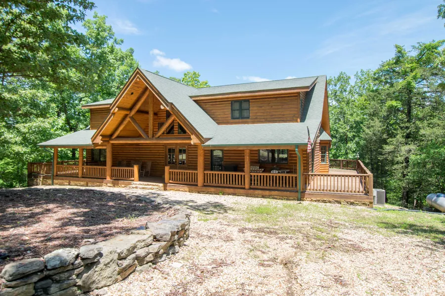Outstanding log home built in 2006 on 16.32 acres m/l bordering the Federal Park at Bull Shoals lake in Theodosia. Private setting, 2 stall dock with swim platform, 3 floors, poured walls, massive beams, and over 5300 square feet in this special Big Cedar like home. 2 private paths to the water & dock, fire pit, shooting range, 30 x 50 shop and just a beautiful setting 45 mins from Forsythe, MO. Original construction of home alone was over $1 million. Located in Theodosia, Ozark Co, MO.