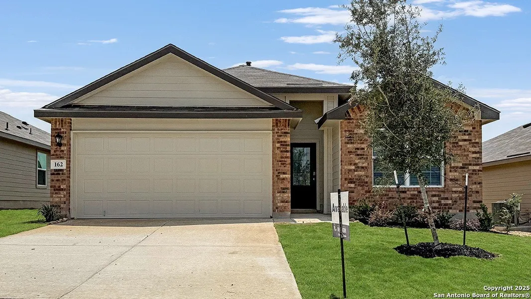 The Brown is a single-story, 1651 square foot, 3-bedroom, 2 bathroom, 2-car garage layout. This layout features a separate dining space that leads to an open kitchen. The kitchen includes plenty of cabinet storage, quartz countertops, subway tile backsplash, stainless steel appliances, electric cooking range, and deep kitchen island facing the living room. The large first bedroom suite is located off the family room and features double vanity sink, separate tub and walk-in shower, private water closet, and a spacious walk-in closet. Spacious secondary bedrooms with large closets, a second full bath with plenty of natural light, and a utility room are conveniently located off the family room. Additional features include tall 9-foot ceilings, 2-inch faux wood blinds throughout the home, luxury vinyl plank flooring in the entry, family room, kitchen, and dining area, ceramic tile in the bathrooms and utility room, and pre-plumb for water softener loop. You'll enjoy added security in your new home with our Home is Connected features. Using one central hub that talks to all the devices in your home, you can control the lights, thermostat and locks, all from your cellular device. Relax outside on the large covered patio (per plan) located off the family room and enjoy full yard landscaping and full yard irrigation.