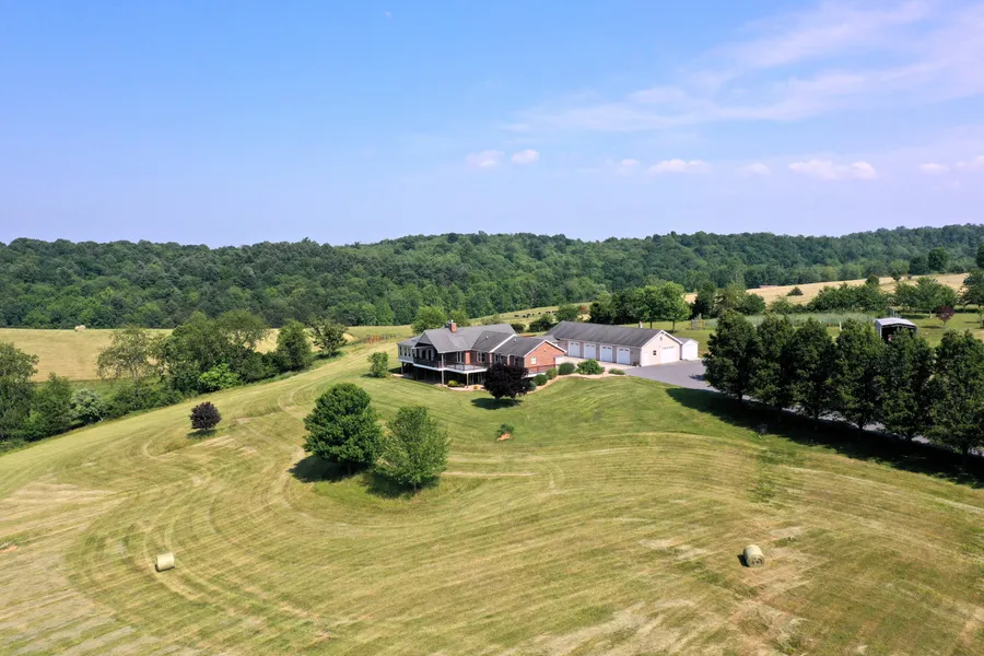 Unwind to breathtaking mountain views at this expansive hilltop residence on over 17 acres just west of historic Staunton, Virginia. Featuring 4 bedrooms and 3.5 baths all on one primary level, this view-oriented property is a car enthusiast's dream with an attached five-car insulated garage, complete with a workshop and exceptional storage. Enjoy delightful living spaces, including a living room with stone fireplace, vaulted ceiling, and wood beams, a spacious master suite with walk-in closet and three-season room opening to the rear deck, and an in-law suite with dedicated accessideal for multi-generational living.