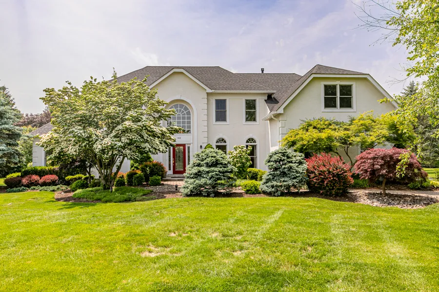 Just minutes from Princeton and worlds away from ordinary, this impeccably upgraded estate-style home is what happens when good taste meets great planning and decides to throw one unforgettable pool party! Set on four lush, professionally landscaped acres that roll out like a private park, this home makes the most of every season, with ornamental trees and tasteful plantings that practically bloom on cue. But the real scene-stealer is the dazzling saltwater pool and spa that shimmer in the sun, all embraced by tiered composite decks and an alfresco sound system that turns any day into a celebration. Inside, the mood is open, airy, and primed for entertaining. A sky-high family room with a gas fireplace anchors the layout, while the gourmet kitchen pulls double duty as prep zone and hangout hub, thanks to its oversized island, Sub-Zero refrigerator and wine fridge, and invisible Bose speakers overhead. The sunroom, home office, and formal spaces are all beautifully presented. Updated baths bring polish to the upstairs bedrooms, reached via front and back stairs. The primary suite adds a touch of indulgence with two bonus sitting rooms ideal for a second home office or an additional closet and a hotel-worthy bathroom renovation featuring a laundry chute and oversized shower with body jets. Twin bedrooms share a renovated Jack and Jill bathroom, and the guest bedroom has a private bath. With its five-bedroom septic, the walk-out finished basement with a full bathroom offers flexibility for extended stay visitors. A full-house generator, newer energy-efficient windows and skylights, and a roof refresh in 2015 mean this home is as headache-free as it is spectacular!