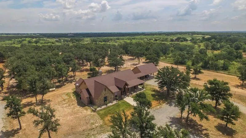 Horse lovers dream in Brock ISD! 2,705 sf 3 bed, 3 bath custom home located on well maintained 23.577 acres. Open concept kitchen, living with built-ins, granite counter tops, cozy fireplace and tons of natural light. 2 master suites include granite counter tops, walk in closets and French doors in one of them. Vaulted ceilings throughout add to the character and charm of this gorgeous home. 8 stall horse barn with 2 outdoor arenas.