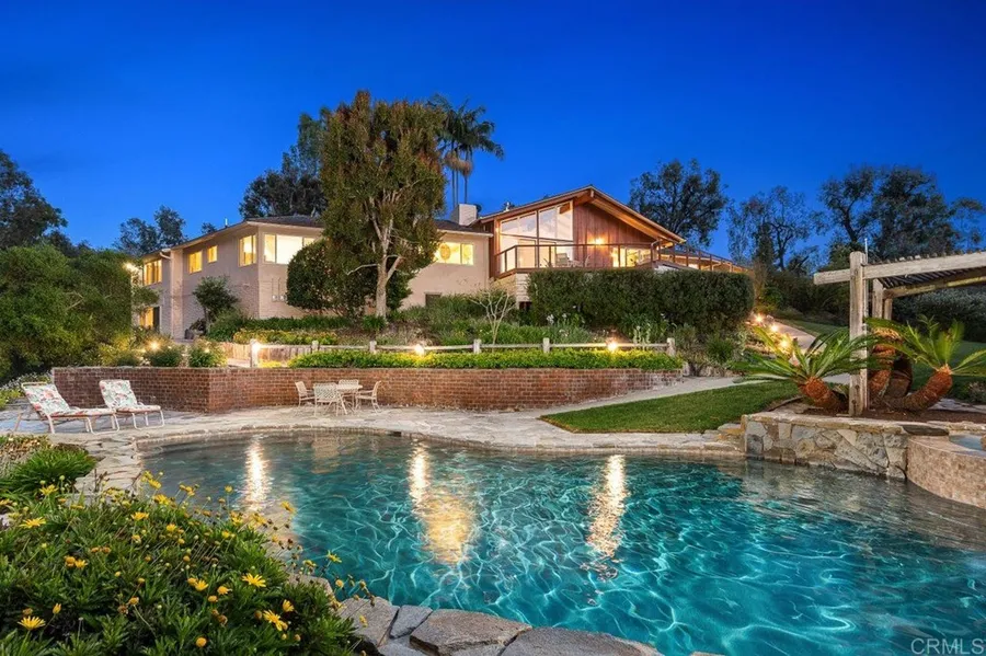 Welcome home to The Enchanted Hill. This secluded ranch style estate sits at the top of almost 5 acres in the West Covenant of Rancho Santa Fe. One of the premier locations in Southern California. This is the first time that this premium selected lot has ever been on the market. Leave your cares behind at the bottom of the long private driveway that leads you through nature and plenty of land for horses, tennis court, guest house and more. As you arrive at the front of this well-manicured home you will feel a sense of quiet security as you listen to the birds and begin to relax knowing that you are home. Enter into a beautiful living room with high wood beamed ceilings and floor to ceiling windows allowing plenty of natural light throughout. Feel at home with the flowing floorplan and beautiful views out of every room in the house. Spacious rooms and bedrooms give an incredible open feeling. Ocean breezes keep you cool with excellent cross ventilation. Enjoy breakfast or your morning coffee on the sunny patio off the kitchen and family room. Step out on your deck and relax in peaceful privacy with treetop sunset views over your beautiful pool and spa while watching the hot air balloons go over head. This home has been truly cared for and well-maintained featuring, house solar, pool and spa solar, fiber optics, hooked up sewer and gas, recoated driveway, recently repainted outside and fresh paint and carpet inside, recently resurfaced pool and newer pool equipment and the deck was rebuilt with Trex. A bonus is a completely separate room perfect for a private office, game room or home gym. Entertaining will be a delight with so much space and plenty of parking. Once you are here, you'll never want to leave. This incredible location has quick access to miles of trails, top rated Roger Row School, The Village, golf and tennis, dining, the Del Mar Race Track, freeways and the beautiful beaches and Pacific Ocean. Don't miss out on this opportunity to own such a unique property!