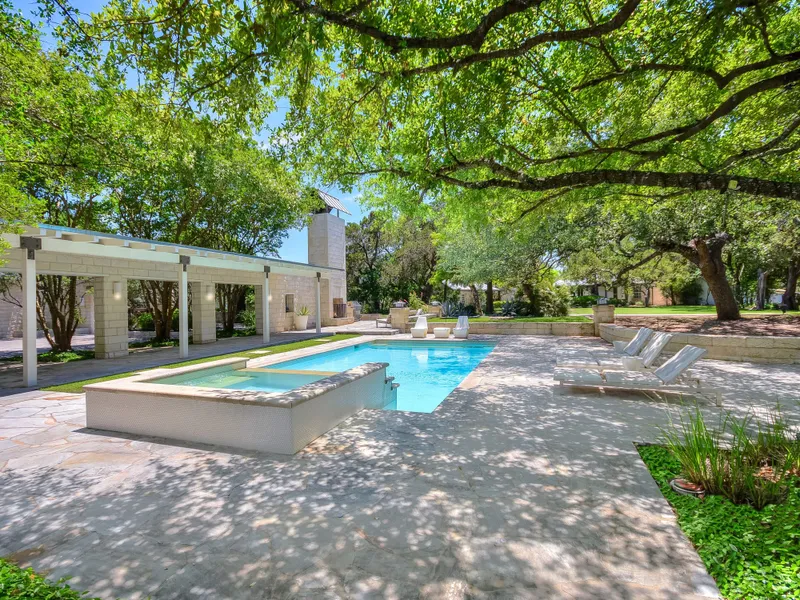 Seated on seven blissful acres overlooking the hills of Austin, Music Hill is a one-of-a-kind luxury private resort and ranch. Breathtaking panoramic views of the sweeping country and deep blue skyline embody a sense of place and purpose. Living up to its name, Music Hill houses a multi-purpose entertainment annex with a state-of-the-art recording studio, custom control room, rehearsal room, exercise/dance studio, media room, art room, and kitchen. The property also boasts a resort-style pool and hot tub, patio with outdoor fireplace, 3/4-mile jogging trail, organic gardens, and a 5-stall stable with a riding arena. Custom site lighting around the grounds illuminates the beautiful landscaping and natural environment. In total, the ~18,000 sq ft property can sleep up to 33 people with a main residence and three additional guesthouses, and a guest apartment, creating a total of 9 bedrooms and 9.3 bathrooms. The single-story, custom-built main residence features a sleek gourmet kitchen, spacious master suite with newly renovated master bath, mesquite hardwoods and tumbled marble floors, 3 secondary bedrooms, and an impressive 4-car carport. The first guest house, affectionately called the Garden House with 2 bed/1 bath, pristine hardwood floors, and garage. The second guest house, the Tree House, is a 2 bed/1 bath with pine flooring, fireplace, two covered decks, 3-car garage, and attached guest apartment. The last guesthouse, Thoughtful House, is a quaint 1 bed/1 bath with hardwood floors and a quiet porch. Only twenty-five minutes away from The Austin Airport, this dynamic estate is accessible yet private, truly the ultimate country retreat and artists paradise.