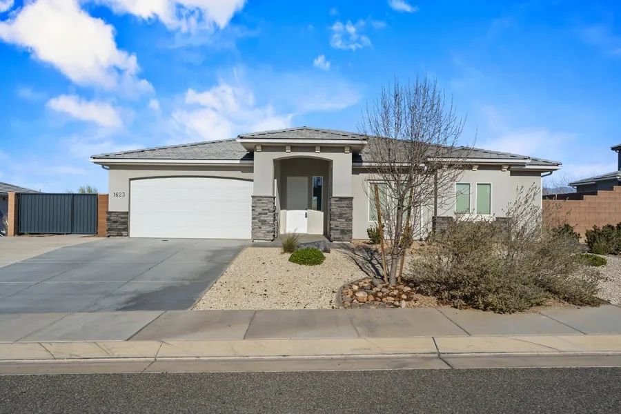This stunning home combines modern living with unbeatable charm. Recently refreshed with a fresh coat of paint and new desert landscaping in the front, the home makes an excellent first impression and feels clean, updated, and move-in ready. Inside, brand-new carpet throughout adds to the fresh, inviting feel. Boasting an open-concept design, the spacious kitchen features sleek white countertops and cabinets, a large pantry, and flows seamlessly into the generous living room-perfect for entertaining or everyday comfort. The large master suite offers a relaxing retreat. Outside, enjoy the privacy of no back neighbors and a peaceful greenspace view, with plenty of room for kids to ride bikes along the backyard sidewalks or the opportunity to create your own garden with the diamond block retaining wall. The huge driveway provides ample parking, and the custom-built entertainment center adds a unique, personal touch. This 2019-built home is low-maintenance and located in a tree-lined neighborhood with a strong sense of community, offering fun neighborhood events and convenient freeway access. Don't miss your chance to own a home that blends privacy, comfort, and an ideal location.