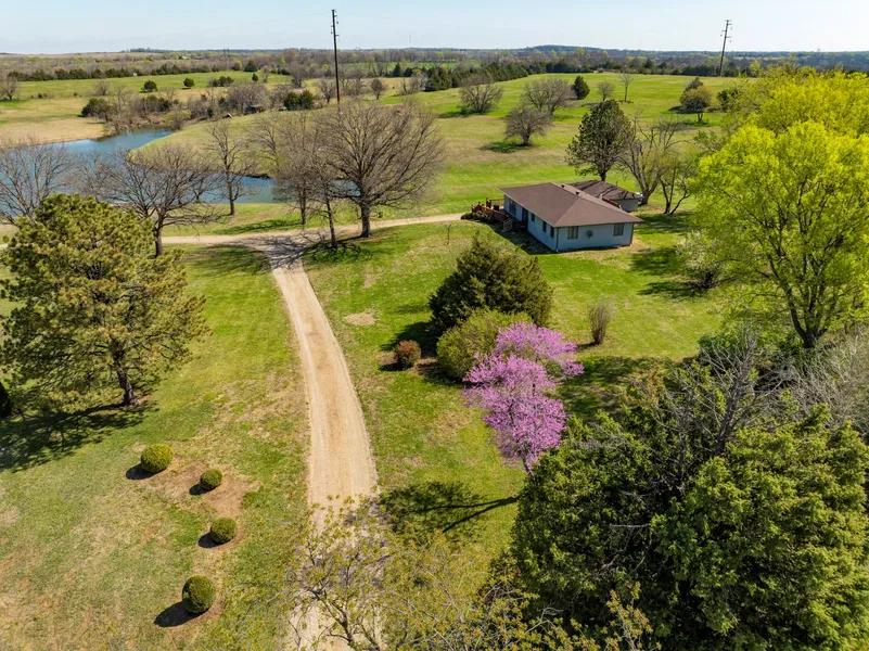 Welcome to Meadowlark Hill, a well-maintained three-bedroom, three-bathroom ranch-style home situated on over 22 scenic acres of serene countryside, located just west of Lawrence, Kansas. With easy access to Lawrence and Topeka, this property combines rustic charm, functional living space, and exceptional outdoor features make this the perfect combination of country living. Whether you're searching for a peaceful homestead, a recreational haven, or simply room to breathe, this property has it all.