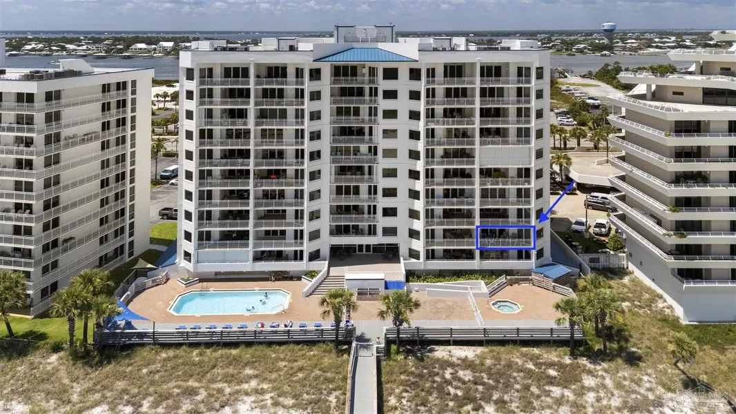 Guaranteed to make dreams come true! This spectacular Gulf end-unit at prestigious Seaspray Condominium is everything you could hope for and more. The open floor plan includes 3-bedrooms, 3-baths and a living area large enough to insure comfort for all. The well-appointed kitchen with full size washer and dryer looks out to the living and dining areas and onto the balcony overlooking the beach. The primary suite is complete with a fancy shower, huge closet and balcony access to relish the morning light. Among the many amenities you’ll enjoy an outdoor pool and spa, a fitness room, a community room, covered garage parking for owners, and extra-large owner storage. On the river side is a first come first serve marina, lighted tennis and pickleball courts, boat storage, boat ramp, boat docks and an RV lot available for use. There is great dining and shopping everywhere. It’s 10 minutes to Orange Beach, 30 minutes to downtown Pensacola and close to Perdido Key Gulf Islands National Seashore.