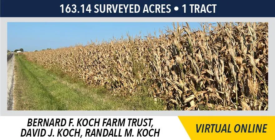 The Koch farm will be sold on a price per acre basis, based on 163.14 surveyed acres.
