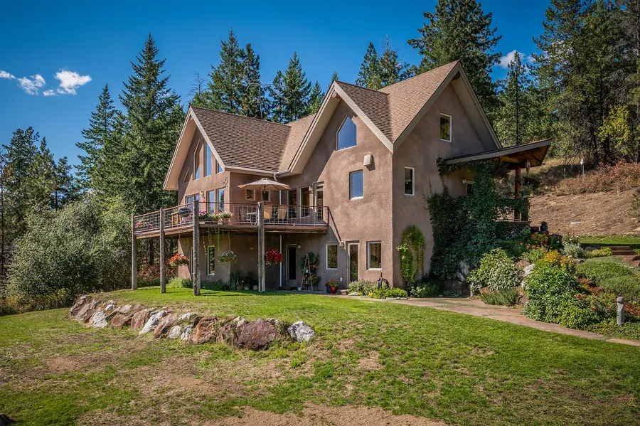This one is Special! Beautiful River / Mountain View Home (you own the view corridor) on 10+ woodland acres, very private just minutes from Sandpoint. 2620 sqft 4 bed / 3 bath, Living Area has open floor plan, wall of windows with vaulted open beam ceilings, freestanding radiant wood stove, finished walk out basement includes Family / Media Room, Hobby / Rec Rm, large laundry plus a wine / root cellar. Flower filled Landscaped yard with fenced vegetable garden, Detached 24x40 building with two car carport, 15x20 shop, and storage. House is custom design and built for low maintenance - Walls built of ICF, insulated concrete form walls for superior insulation, Heat Recovery Ventilator heat exchanger with electrostatic filter, In-floor heating, Radon mitigation installed, extra insulation throughout, Low-E windows. DSL line of site internet Starlink is also available in the area. Private & peaceful country living with no HOA or CC&R's.