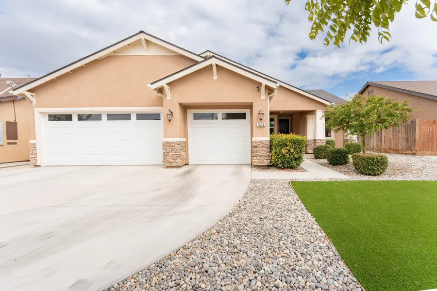 Welcome to this inviting 3-bedroom, 2-bathroom home nestled on a 6,480 sq ft lot in a quiet Hanford neighborhood. Designed for comfort and convenience, this home offers a modern layout, leased solar for energy efficiency, and great curb appeal. Step inside to find an open concept living space filled with natural light. The kitchen features a large island, granite countertops, and plenty of cabinet space perfect for family meals and entertaining guests. The adjoining living room and dining area create a seamless flow for everyday living. The primary suite provides a peaceful retreat, complete with a spacious ensuite bathroom and generous closet space. Two additional bedrooms and a full bathroom make this home ideal for families or those needing a home office or guest room. Step out back to enjoy your private yard with lush green grass a great spot for kids, pets, or weekend barbecues. With a 3-car garage, leased solar, and a well-maintained interior, this Hanford gem is move-in ready and waiting for its next owner!