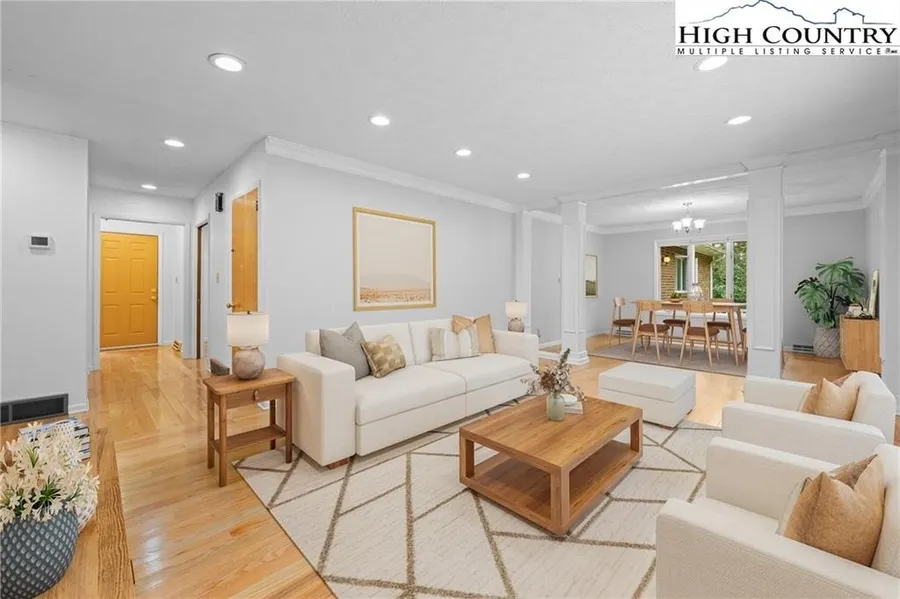 Unbeatable location in Boone! Situated directly across from New Market Center and just minutes from Appalachian State University, Downtown Boone, Watauga High School, and the hospital, this beautiful home offers both convenience and comfort in the sought after Hardin Park School District. Enjoy one level living with a refreshed main level designed for everyday ease. The updated kitchen features high end appliances including a Wolf gas range, solid surface counters, Drawer microwave, and generous cabinetry with unique interior features specifically designed storage and usage! A cozy sitting room with a fireplace sits just off the kitchen, and the spacious living and dining rooms provide an inviting layout for gatherings and entertaining. The primary bedroom includes an en suite bathroom, accompanied by two additional bedrooms and a full bath on the main level. A mudroom leads to the oversized two car garage and includes a convenient laundry area and half bath. Downstairs offers exceptional versatility with a large bonus room, additional living area, and another garage ideal for hobbies such as woodworking, car restoration, or workshop. The tax record lists the home as 4 bedrooms, though there is no egress directly from the downstairs bonus room. This home features natural gas heat and updated central air installed in 2023. Some photos have been virtually staged to show the inviting potential. Located in the highly desirable University Village neighborhood, this property combines practicality, comfort, and proximity to everything Boone has to offer!
