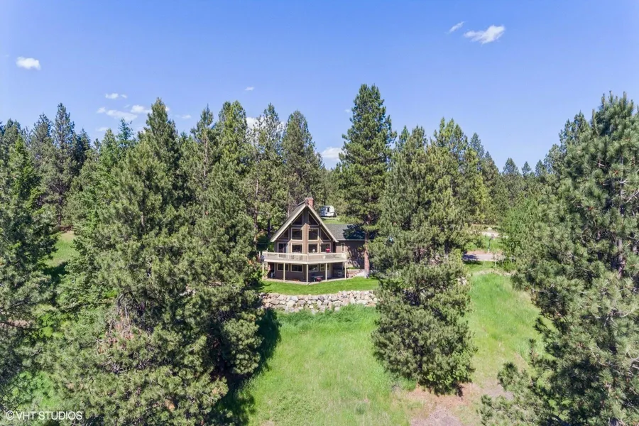 Beautiful pastoral and mountain views from this multi-level home indesirable Orchard Ridge Estates on 5 serene acres with your own walkingtrails. The walkout basement has a separate entrance with two bedroomsor one bedroom and one office, a full bath, large family room with amassive stone fireplace, laundry room, Salish mountain views and a sizablepantry-storage room. The main level has two bedrooms, one bath.The large master bedroom is located upstairs. The great room has 20 ftbeamed ceilings and 210 degree views through large windows of mountains,trees, pond, horses, and meadows. The fully equipped kitchen offersgranite counters and knotty alder cabinets. A second wood stove with abrick chimney graces this living space. Owner states nightly rentals allowed.