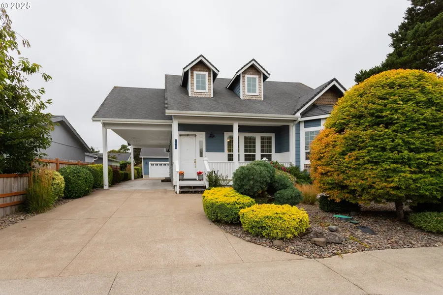 This charming 3 bedroom, 2 bathroom home is a must-see in person to truly appreciate its beauty. Step inside to the open foyer that flows into a bright, airy sitting room with vaulted ceilings. The primary suite is complete with a spa like bath featuring a soaking tub, and separate walk-in shower. A full hallway of closets adds storage, and a separate laundry room provides convenience. The kitchen features a cook's island, granite countertops and seamless flow into the living room. Step outside onto the Trex deck that is shared with your very own cottage. Inside the cottage you will find vaulted ceilings, bamboo floors, a full kitchen, bathroom and laundry, making it perfect for guests, extended family or potential rental income. Additional features include RV parking with carport. Two car garage with cadet heater, and front and rear entrances with alley access; allowing you to store a camper under the carport while still parking your car inside. This home blends charm, functionality, and flexibility in a location that lets you feel part of the neighborhood while still enjoying your own private haven.
