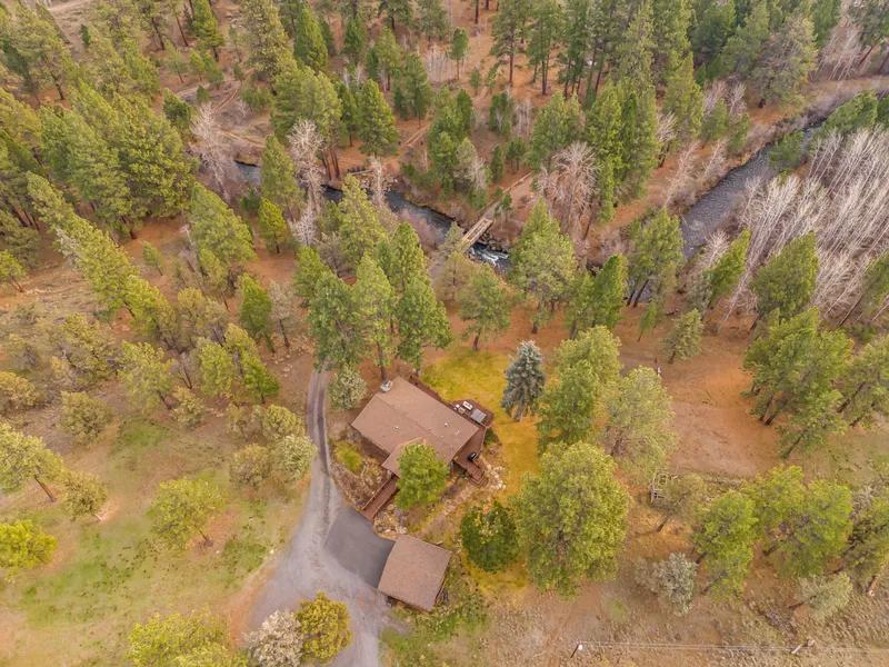 Highly private and peaceful waterfront acreage with approximately 1200' of accessible Whychus Creek frontage located a short distance from downtown Sisters. Interior of home features: Open floor plan; Large entertainer kitchen with locally crafted Cedar cabinets, granite and black walnut counters, maple hardwood floors leading into dining and living rooms which all have unobstructed views of Whychus Creek; Primary en suite and an additional bedroom/bathroom on the main level; Three remaining bedrooms, full bathroom, large bonus room are downstairs along with large utility room. Exterior features: Huge upper and lower decks with Creek views; 3.5 irrigated acres, flat pasture for hay production; EFU zoning with low taxes and multiple possible farm uses; Feeder barn, pole barn and detached garage for all covered storage and/or farm animals; Great mixture of Ponderosa Pine trees and Aspen tree groves. Home functions as a permanent home or also has a terrific vacation rental history.