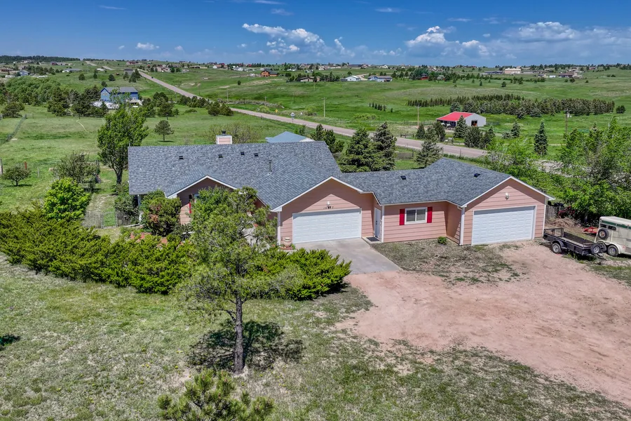 Experience the Best of Country Living. Set on 3.5 serene acres in Black Forest, this extraordinary property captures the essence of peaceful rural living with stunning panoramic views of rolling meadows and snow-kissed Pikes Peak. Plus the bluffs around Homestead Park. Thoughtfully designed to embrace both comfort and character, the residence offers a seamless blend of rustic charm and modern livability. Step into light-filled living spaces warmed by a cozy fireplace, and gather in a well-equipped kitchen made for both meals and memories Retreat to a spacious primary suite complete with a newly updated en-suite spa bath with steam room and walk-in closet. Whether you're sipping morning coffee on the huge deck or hosting friends beneath the open sky this a truly a great place to live. Beyond the home, the land opens up to a world of possibilities. Fully usable, fenced, and horse-ready, it’s ideal for livestock, agriculture, or simply stretching out and enjoying the quietude. With a 4-car garage, ample space for RVs and trailers, a loafing shed, and room to build barns or arenas, your vision—be it a family sanctuary, working homestead, or equestrian retreat—can come to life without compromise. Free from HOA restrictions and supported by a private well and septic system, the property is zoned for both agricultural and residential use. Located 20 minutes from Colorado Springs and Monument, you’ll enjoy the perfect balance of privacy and accessibility. This is more than a home—it’s a lifestyle. One of open skies, endless potential, and quiet moments that remind you why you love the country. Schedule your private tour today and step into the freedom and beauty of Black Forest living.