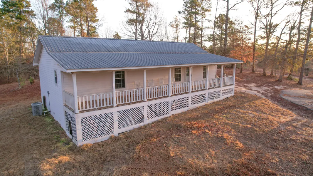 This great property is privately located and complete with a house and shop. The house is a 2 bedroom 2 bath with a large porch spanning across the front and overlooking the property. It would make an awesome hunting cabin or a home for some great country living. There is gas heat, stove and hot water and a well provides water to the house. The 30x40 shop is steel-framed and has a concrete foundation and roll up door.