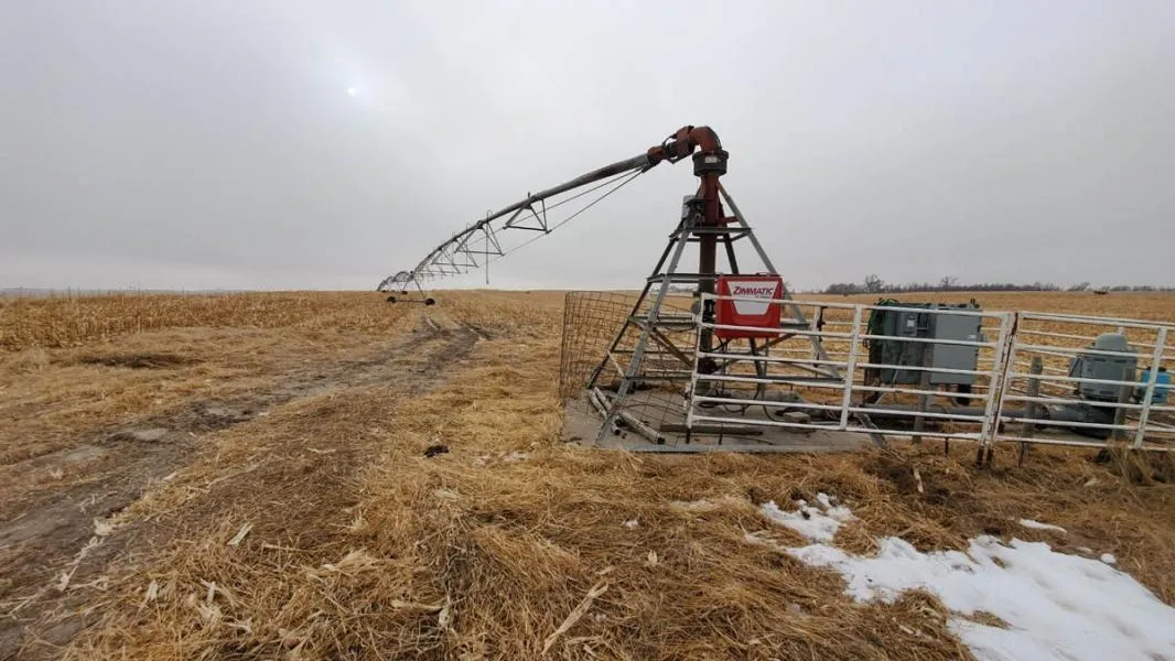 Irrigation equipment includes an Older Zimmatic 7 tower pivot with newer Vision control box and low pressure drop sprinkler package, 75 hp General Electric motor, 8 Sargent pump and electrical panel. Well was reworked in 2013 when electrical power was installed.