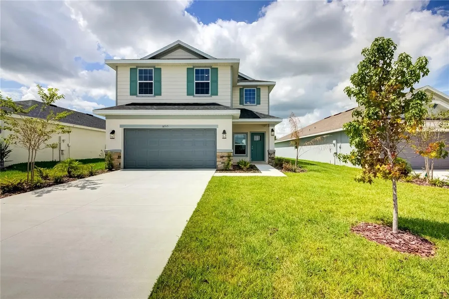 MOVE IN READY NEW CONSTRUCTION!! Adams Homes offers buyers a $1,000 deposit, with closing costs covered (excluding prepaids), and on select homes, special financing as low as 3.99 (FHA, VA, USDA) when using our preferred lender. Discover your dream home in an unbeatable neighborhood, perfectly situated on a prime lot with a spacious backyard and a breathtaking view from the upstairs primary suite and main living areas. This stunning 2,202 square foot gem offers a 4-bedroom, 2.5-bathroom open floorplan, tailor-made for modern family living. Step inside to the smooth elegance of plank tile flooring throughout the main areas, a beautiful touch that’s also a breeze to maintain for busy households. Quality craftsmanship is on display with decorative 5-panel doors and 5.25-inch baseboards, giving every room a sense of refined style. Enjoy soaring 17-foot ceilings that create an open, airy atmosphere, while 3 cm granite countertops in the kitchen and bathrooms add both durability and elegance. The expansive living space flows seamlessly into a large covered lanai, perfect for outdoor entertaining or relaxing in your own private oasis, with ample room in the backyard for a pool or family gatherings. For your peace of mind, every Adams Home includes a built-in pest control system and a 10-year structural warranty, so you can feel confident in your investment for years to come. Schedule your showing today and experience the best in comfort, style, and convenience—plus, be sure to ask about our current incentives!