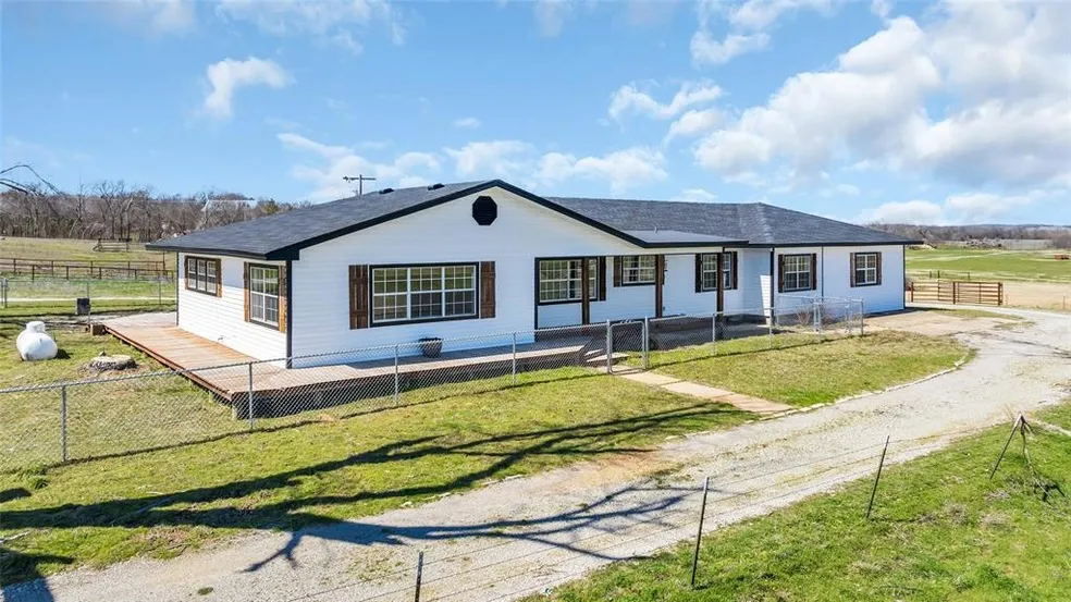 Enjoy expansive views over pasturelands from the covered front porch of this hilltop property, with a lovely 4-bedroom, 2 baths ranch-style home. The home has a large living room with hardwood flooring and large windows to bath the room with sunlight. There is a nice sized dining room adjacent to the spacious kitchen and entry. The bonus room with a walk-down entry into the storm cellar, would make a nice office, den/study, exercise room or hobby room. It opens to a large deck in the backyard for barbeques with family and friends. The master bedroom, has its own bathroom and down the hall are 3 additional bedrooms and a hall bathroom plus an indoor laundry room. This mini ranch is located on 4.90 +/- acres, with a fence around the perimeter. There is also a chain link fence around part of the home. The driveway, wraps around the home, so you have easy in/out access. Many amenities for outdoor pursuits are close by, including Lake Murray State Park to the South, and to the North is Lake of the Arbuckles, and Sulphur State Park. This property is in the Dickson School District. Quiet, scenic and ready for you to make memories.