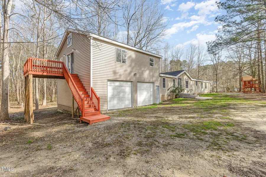 A property is like a hidden gem, 27 minutes from downtown Raleigh. NO HOA!. Nestled on a 3 ACRES parcel of land. Step inside and see, 3 bedrooms and 3 bathrooms features with its own walk-in closet, while the master suite has dual walk-in closet, a bathroom complete with a crown bathtub. An open-concept kitchen, brand-new stainless-steel appliances, off-white cabinets, granite countertops, and a refined ceramic backsplash. A spacious dining area, and a convenient laundry room. While the property has undergone modernization, the charm of its rustic cabin style has been preserved, with the rich woodwork walls and floors of the living and entertaining areas. As if this weren't enough, it has a 2-car garage, with a BEAUTIFUL GUEST HOUSE above & 2 bedrooms, living area, a bathroom, and a kitchen, with its own entrance, perfect for guests, or potential rental income. Agent Remarks: Measurements from Tax Records, professional measurements before home active, Guest home is unpermitted, showings start on Feb 29th.