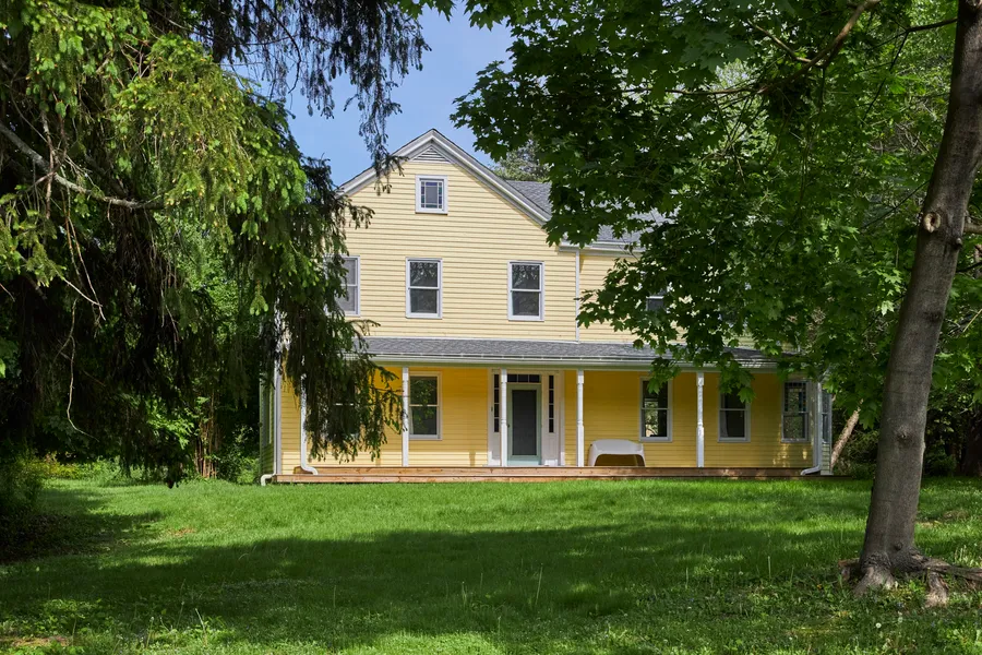 At last, a rare find fulfilling so much of your country vision! Situated on almost 5 beautiful acres along a quiet walking and biking road, this late 19th century center-hall is replete with original details. The sunset facing full-length covered porch welcomes you onto gleaming restored floorboards throughout this residence. Everywhere, high ceilings and tall windows create a fresh and light ambiance. Comfortable double parlors, one intimate with a sweet brick fireplace and handsome mantle, the other more airy and spacious, flank the entry foyer with its original stained glass. The large, fully equipped sunlit eat-in kitchen is a lure to prepare a farm-to-table meal to enjoy here, on the wooden deck facing the lush greenery, or in the delightful dining room for a more formal evening. Up the stairs with the original banister and newel post, we find a special landing to cozy up with a late-night book or morning brew as well as 4 generous and light corner bedrooms. Up a hidden staircase, we have a secret garret! Outside for your checklist of special amenities! The 1600sqft 2-story Studio w/electric is perfectly sited within an expanse of green lawn. Its unique fenestration and exquisite north light provide a sanctuary-like experience for your own creativity in any medium - may it be art, music, movement, or perhaps professional space. The 3-bay quite charming garage, with a hip roof and lovely windows, offers plenty of room for vehicles and country gear to indulge your athletic side. The property boasts lovely mature, aromatic flowering and shade trees, as well as a meditative old-growth pine grove. Private, yet not isolated; away yet convenient to Great Food, Antiques, Galleries, Activities throughout Rhinebeck, Red Hook, Tivoli, Germantown, and Hudson. This original buttercup yellow Moore Road house awaits her next chapter providing you a canvas to build your own sweet memories. She's gracefully aged with a youthful demeanor.
