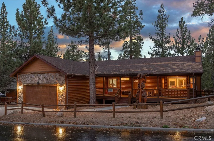 Welcome to Eagle Mountain Estates—where refined mountain living meets everyday comfort. This single-story, log-style home, built in 2003, sits on a generous 10,000+ sq ft lot and offers approx. 2,200 sq ft of thoughtfully designed living space. Soaring vaulted ceilings and warm wood textures create an inviting lodge atmosphere, while large windows bring in beautiful natural light and frame the forested surroundings. The spacious floor plan includes three en suite bedrooms, providing privacy and convenience for family and guests alike. The primary suite offers a peaceful retreat, while the additional bedrooms are perfectly suited for hosting, remote work, or extended stays—each with its own attached bathroom for added comfort. Recent upgrades elevate the home’s efficiency and livability, including a new Aspen spa, new A/C system, new whole-home humidifier, new garage door, and solar panels to help reduce utility costs year-round. Step outside and enjoy Big Bear’s four-season lifestyle from a large refinished back deck that’s perfect for entertaining, outdoor dining, or relaxing under the stars. The charming covered front porch sets the tone for slow mornings with coffee and quiet evenings taking in the mountain air. The attached two-car garage and level access make this home practical in every season. Located in one of Big Bear’s most sought-after neighborhoods, you’re close to the lake, ski slopes, hiking trails, and local conveniences while still feeling tucked away in your own retreat. A standout blend of comfort, character, and quality—this is mountain living done right.