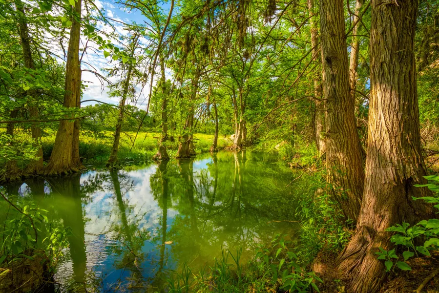 For nature lovers, Cypress Valley River Ranch is a paradise. The property features 30 acres of lush bottomland, adorned with hardwoods such as cedar elm, cypress, blue oak, live oak, red oak, and walnut, providing a rich habitat for wildlife. Axis deer, whitetail deer, turkey, and a variety of native and exotic game roam freely, offering ample opportunities for wildlife enthusiasts and hunters alike.